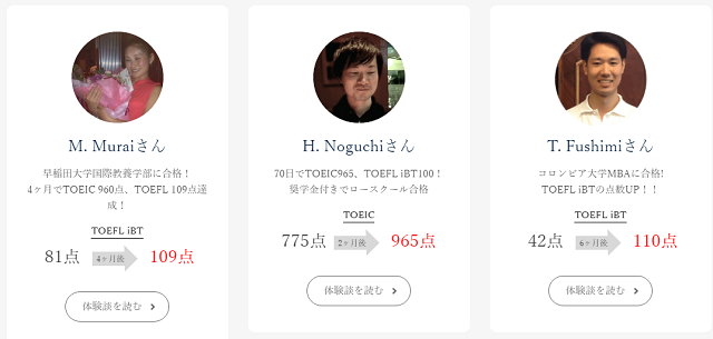 | H. Noguchiさん | 2ヵ月で775点⇒965点 |