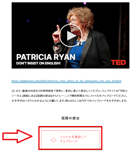 ②「ファイルを選択してアップロード」を押して提出する